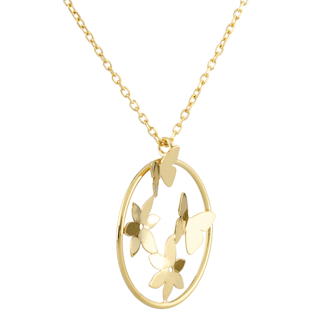 Twee delicate vlinders zijn vereeuwigd in geelgoud.