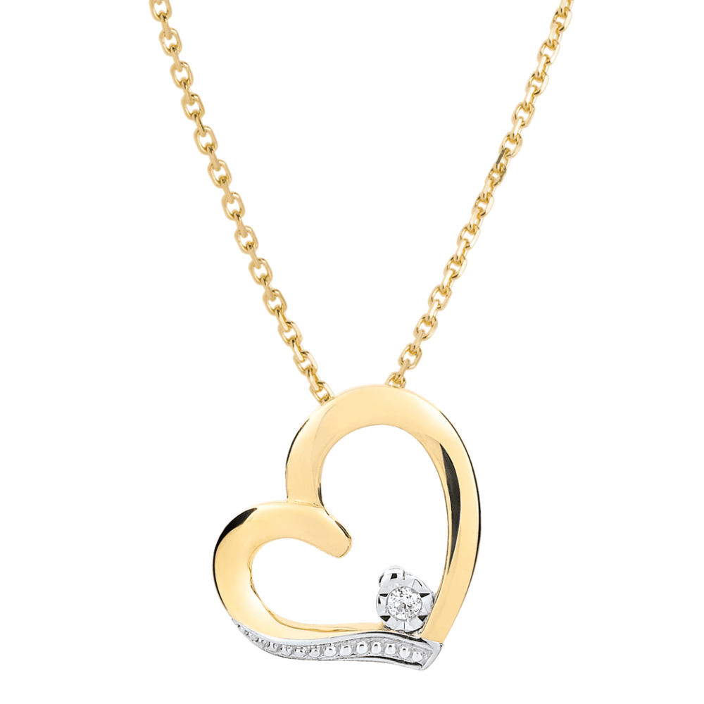 Een tweekleurig hart met moderne bogen, met in zijn centrum een diamant omringd door witgoud.