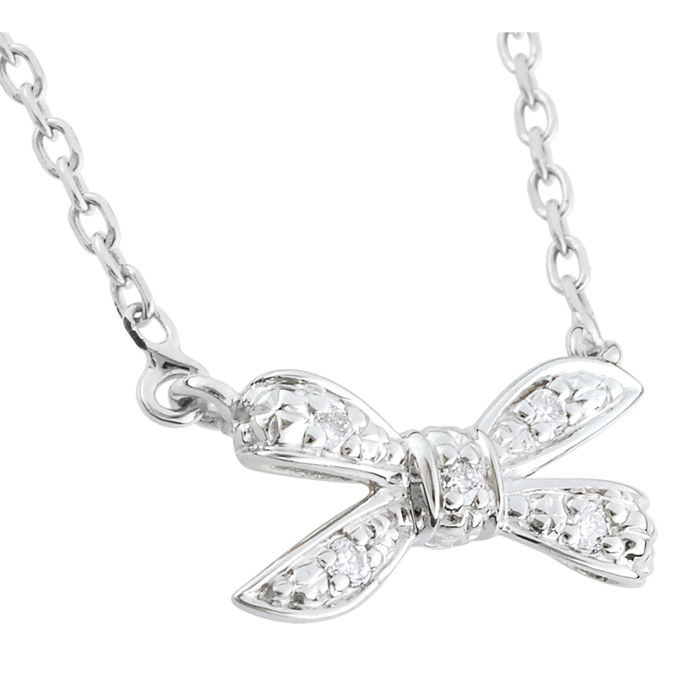 Een knooppunt in goud en diamant is opgehangen aan weerszijden door een witgouden ketting.