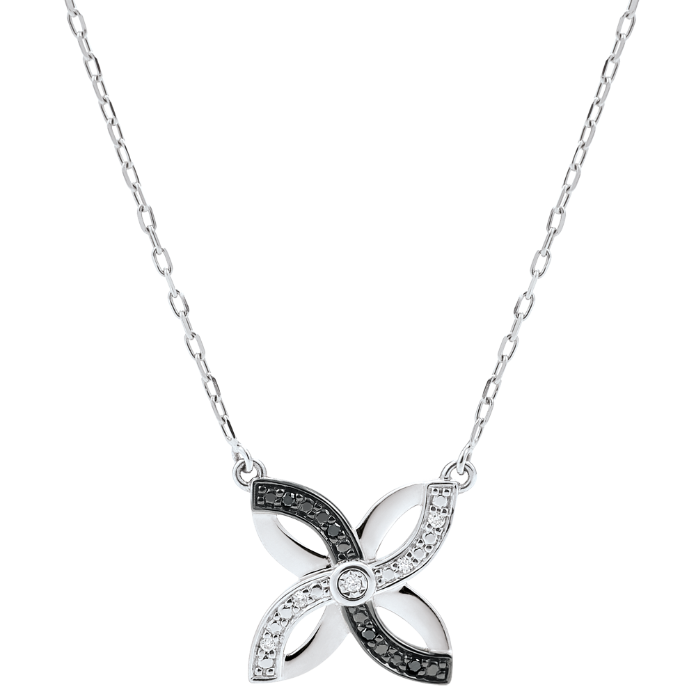 INFINITY NR. 7Halsketting Bloemen - Witgoud 9 karaat - Zwarte diamant, Diamant ID : 3250 5