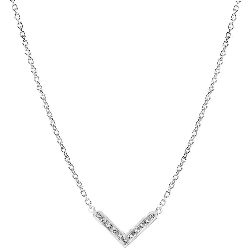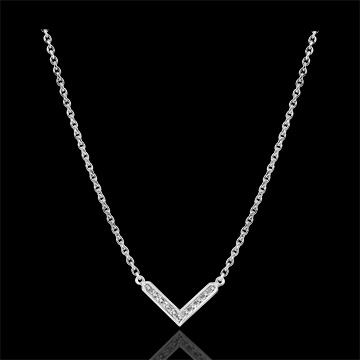 Een grafisch, minimalistisch juweel, voor een discrete schittering in de holte van de hals, in een zuivere, eigentijdse stijl.