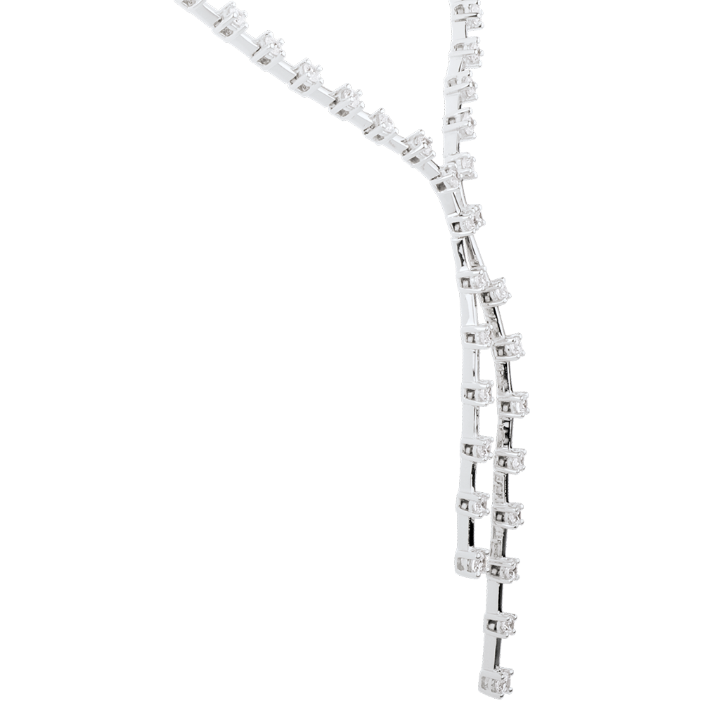 Een regen van diamanten gezet op witgoud, als kostbare druppels rond je nek.