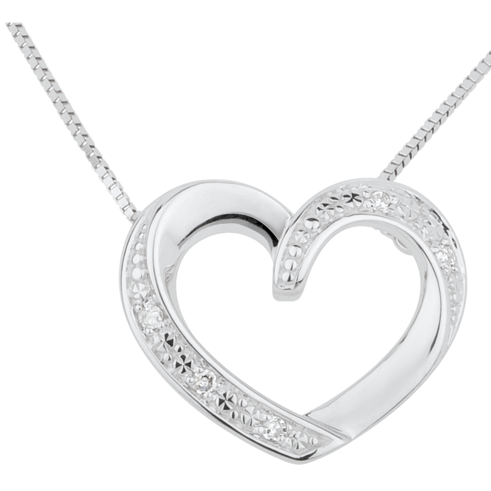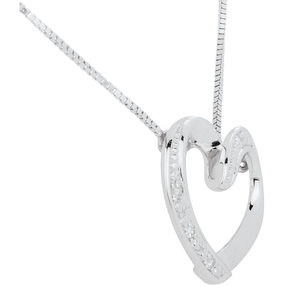 Een witgouden hart met diamanten aan een Venetiaanse ketting.