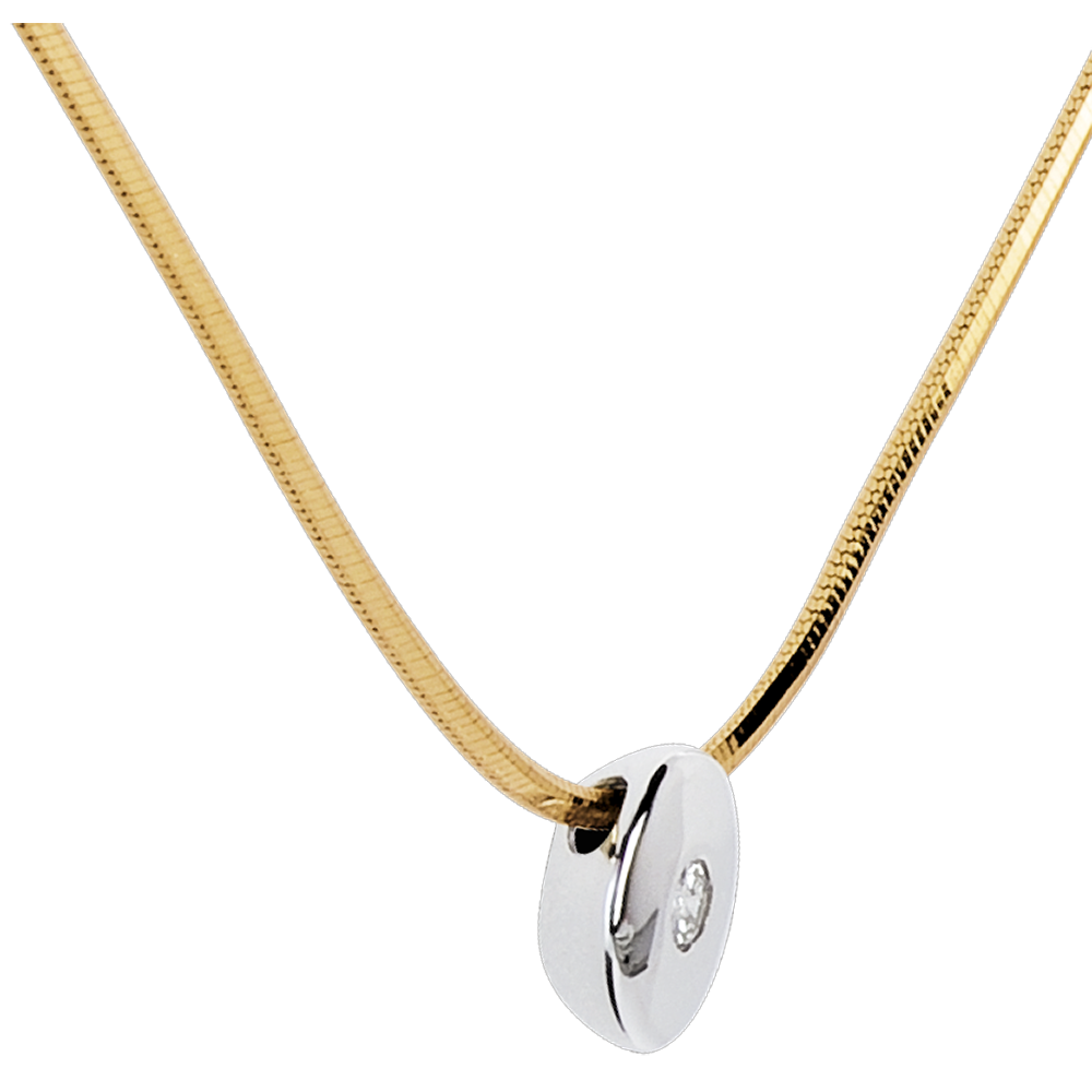 1 diamant : 0.03 karaat - Wit en geel goud (18 karaat = 750/-): 3.6 g.