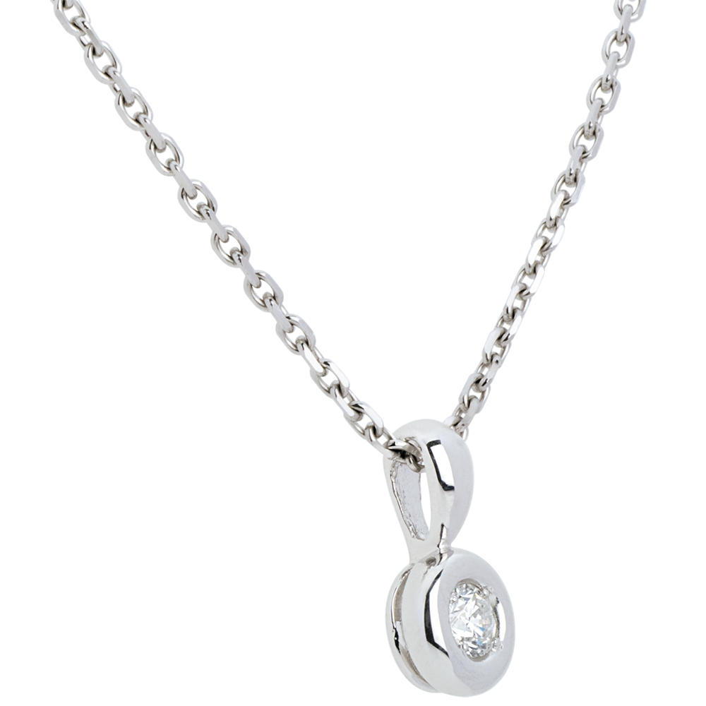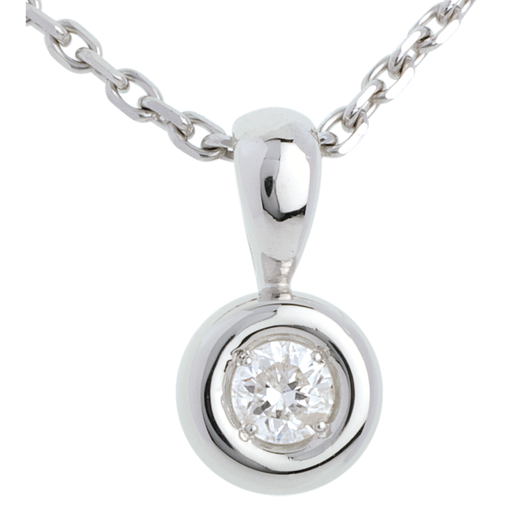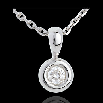 Een diamant genesteld in het hart van een witgouden kelk, voor een afgeronde hanger.
