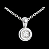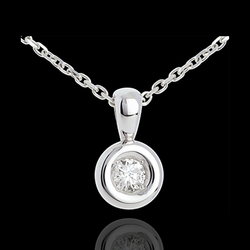 Een diamant genesteld in het hart van een witgouden kelk, voor een afgeronde hanger.