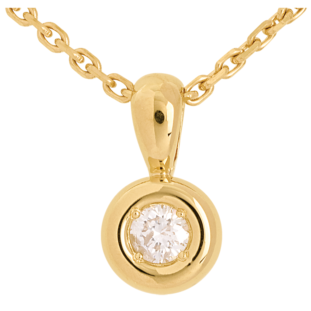 Een diamant genesteld in het hart van een geelgouden kelk geel, voor een ronde hanger.