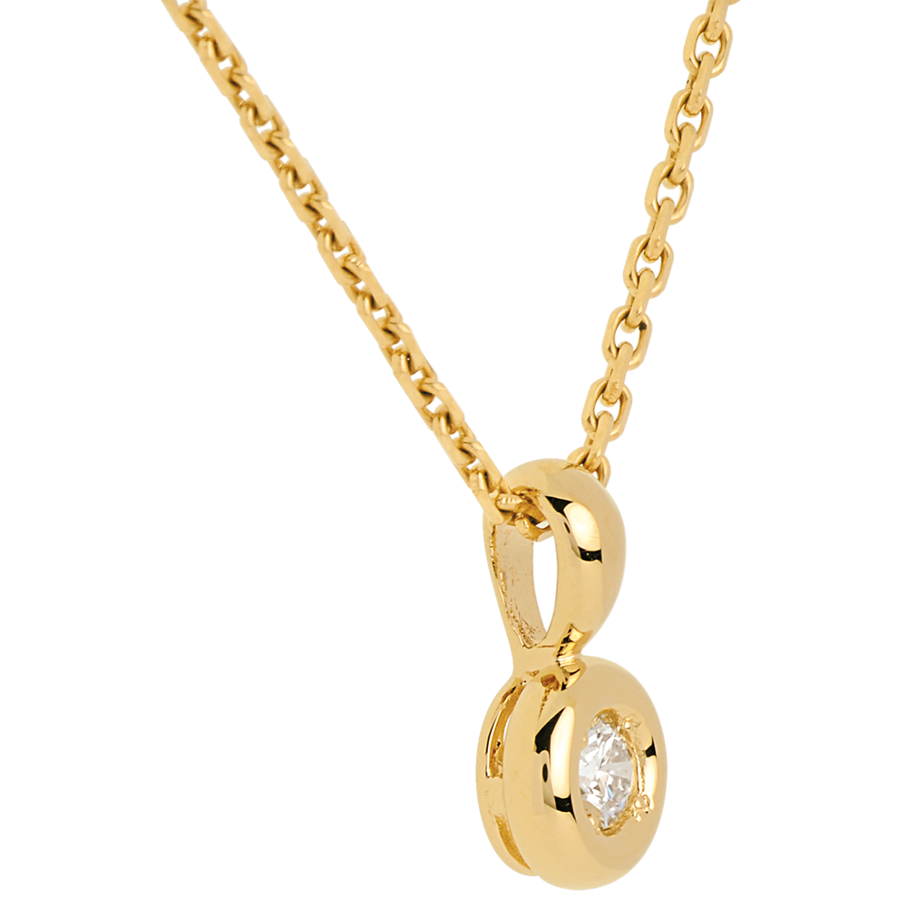 1 diamant : 0.14 karaat - Geel goud (18 karaat = 750/-): 0.8 g.