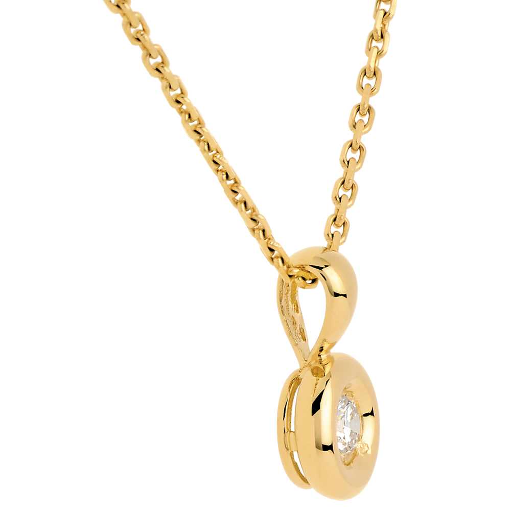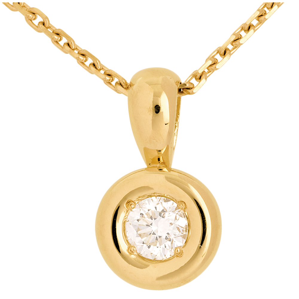 Een diamant genesteld in het hart van een geelgouden kelk geel, voor een ronde hanger.