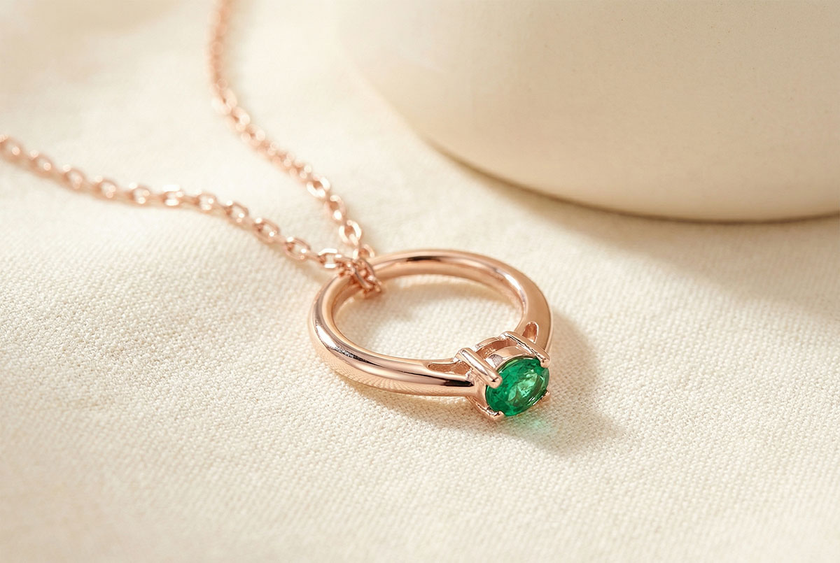 CREATIE VAN « ATELIER » NR. 2Hanger - Roségoud 9 karaat - Synthetische smaragd ID : 7482