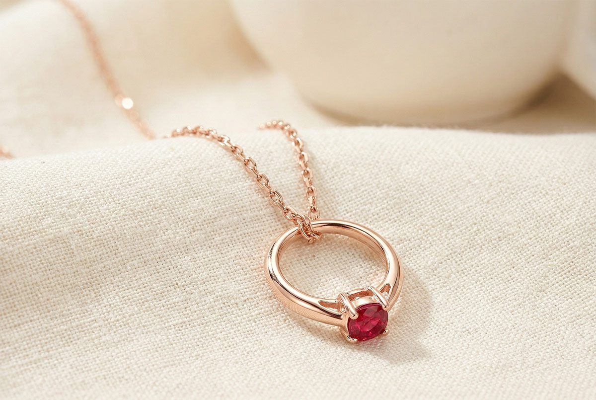 CREATIE VAN « ATELIER » NR. 2Hanger - Roségoud 9 karaat - Synthetische robijn ID : 7483