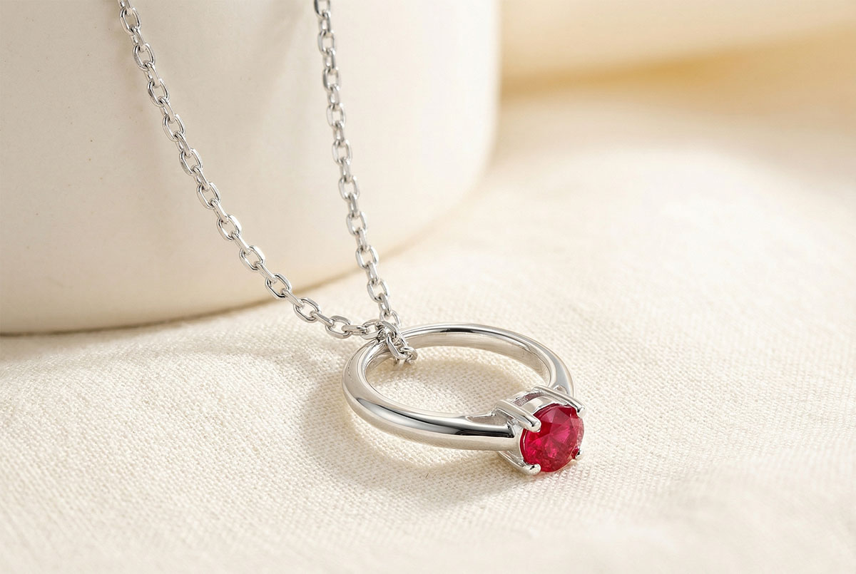 CREATIE VAN « ATELIER » NR. 2Hanger - Witgoud 9 karaat - Synthetische robijn ID : 7475