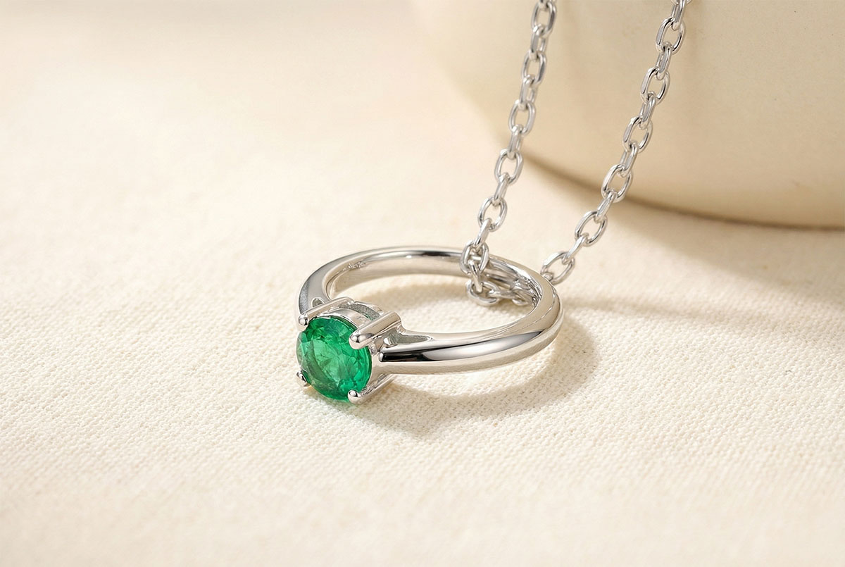 Hanger "Cutie Ring" - 9 karaat witgoud en synthetische smaragd