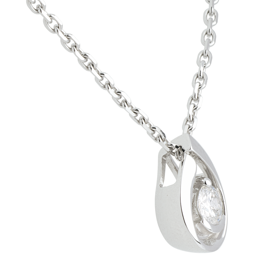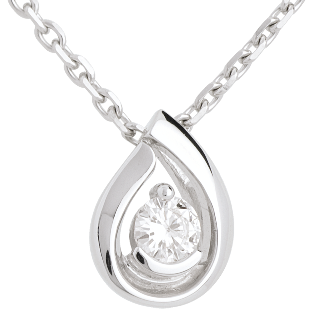 Een traan witgoud, bezet met een diamant, een ronde hals getint in zoetheid en emotie.