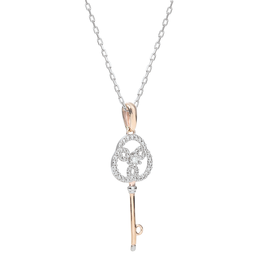 Hanger in roségoud en witgoud met wulpse rondingen ingesteld met gouden bloemen zorgen voor dit unieke juweel voor de eeuwigheid.
