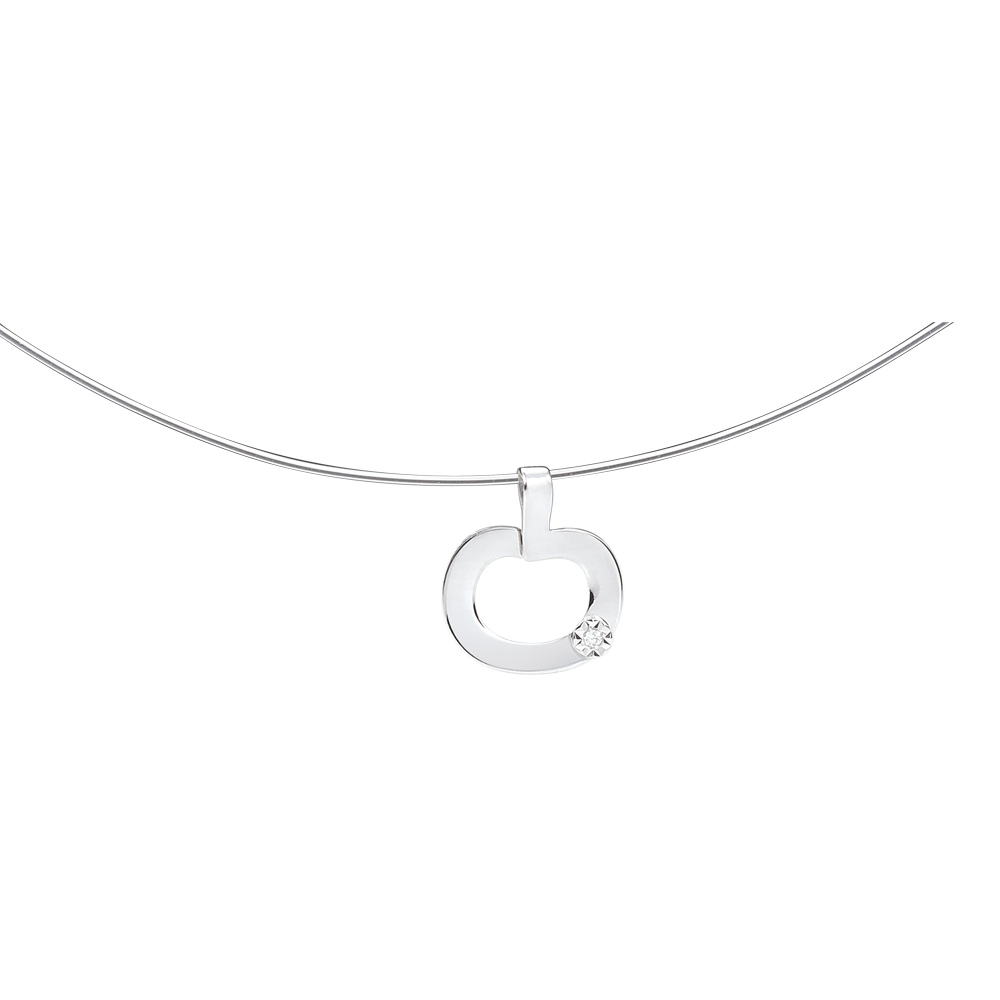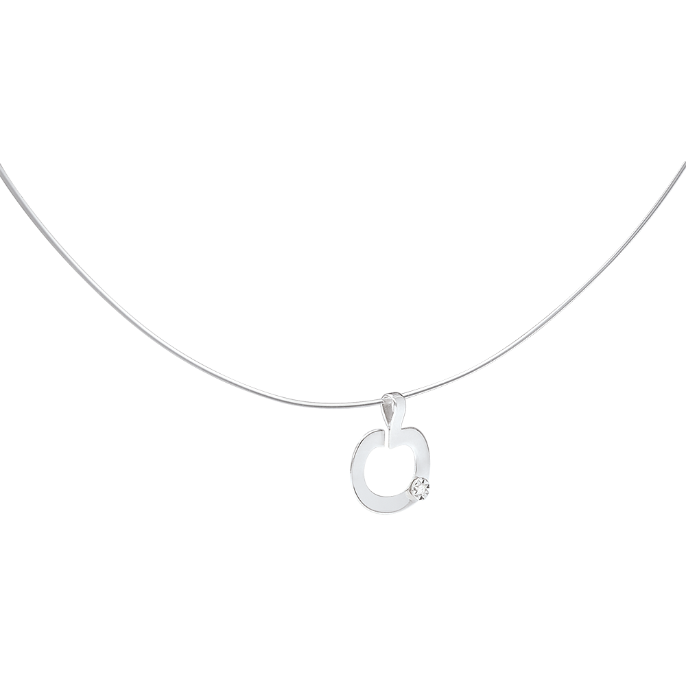 De appel van Eden, getint met moderniteit, wordt geschetst in gepolijst witgoud en bezet met een enkele diamant.Transparante ketting met nylondraad, lengte 43 cm
