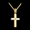 Een hanger met een diamanten solitaire, in het midden van een geelgouden kruis.