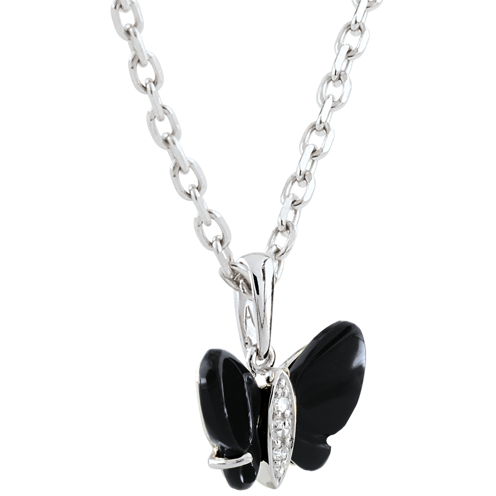 DAGDROMEN NR. 13Hanger Vlinder - Witgoud 9 karaat - Zwarte onyx ID : 2294