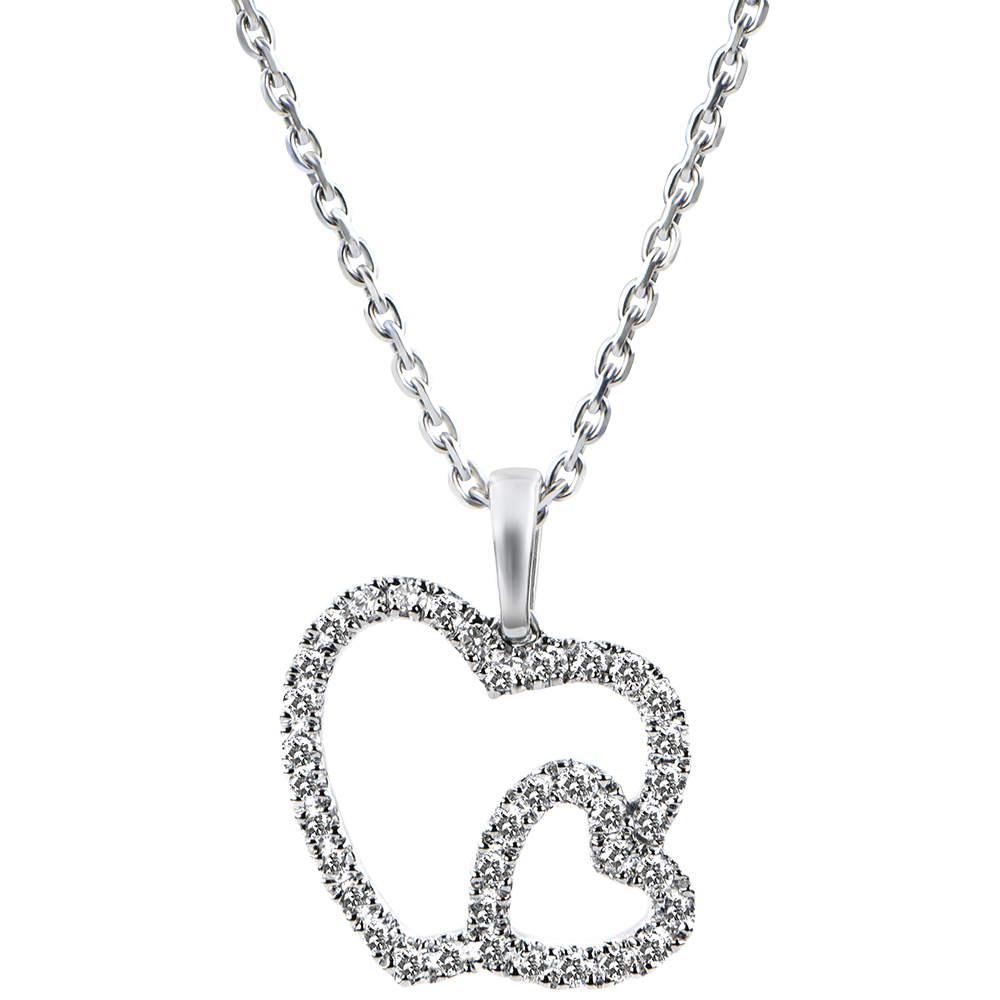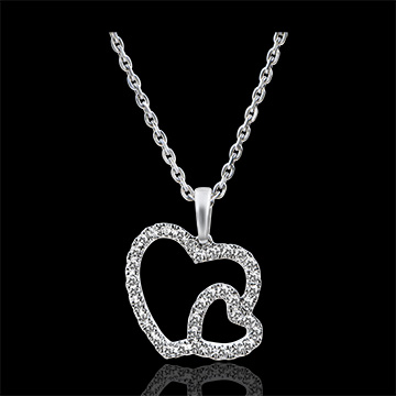 Het iconisch hart herwerkt in een dubbele versie voor deze must have, zachte en delicate ketting. Een opengewerkt model met bezette randen die er een modern en jong juweel van maken.