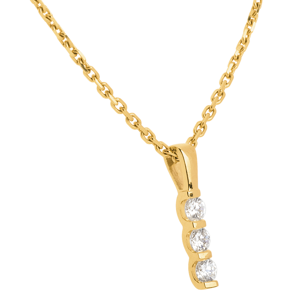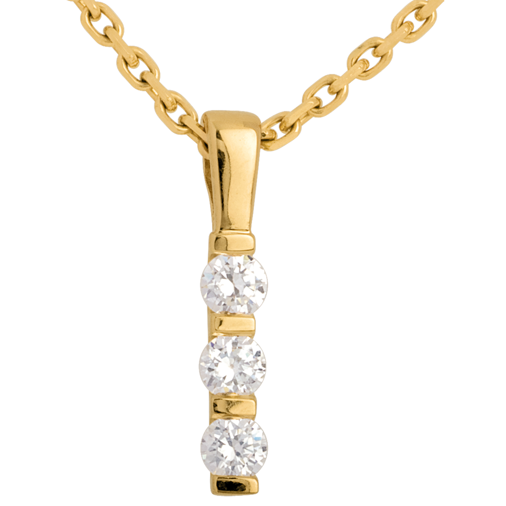 Hoeksteen van een diamanten trilogie met een hanger in geelgoud.