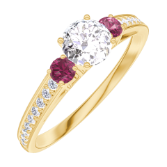 « L'ATELIER » NR. 160045Ring Geelgoud 18 karaat - Diamant rond 0.3 Karaat - Aanleunende edelstenen Robijn - Setting Diamant 4.5 (37)