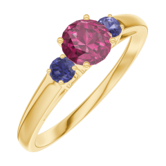 « L'ATELIER » NR. 160662Ring Geelgoud 9 karaat - Robijn rond 0.3 Karaat - Aanleunende edelstenen Blauwe saffier 4.5 (37)