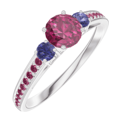 « L'ATELIER » NR. 160671Ring Witgoud 18 karaat - Robijn rond 0.3 Karaat - Aanleunende edelstenen Blauwe saffier - Setting Robijn 4.5 (37)