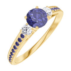 « L'ATELIER » NR. 161233Ring Geelgoud 18 karaat - Blauwe saffier Rond 0.3 Karaat - Aanleunende edelstenen Diamant - Setting Blauwe saffier 4.5 (42)