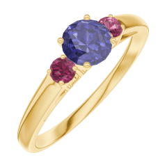 « L'ATELIER » NR. 161241Ring Geelgoud 18 karaat - Blauwe saffier rond 0.3 Karaat - Aanleunende edelstenen Robijn 4.5 (37)