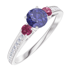 « L'ATELIER » NR. 161247Ring Witgoud 18 karaat - Blauwe saffier rond 0.3 Karaat - Aanleunende edelstenen Robijn - Setting Diamant 4.5 (42)