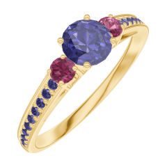 « L'ATELIER » NR. 161253Ring Geelgoud 18 karaat - Blauwe saffier rond 0.3 Karaat - Aanleunende edelstenen Robijn - Setting Blauwe saffier 4.5 (42)