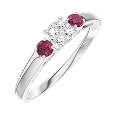 « L'ATELIER » NR. 209043Ring Witgoud 18 karaat - Cluster van natuurlijke diamantent rond gelijkwaardig 0.3 - Aanleunende edelstenen Robijn 4.5 (36)
