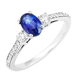 « L'ATELIER » NR. 1002457Ring Witgoud 18 karaat - Synthetische saffier Ovaal 0.5 Karaat - Aanleunende edelstenen Laboratorium diamant - Setting Laboratorium diamant 5 (4)