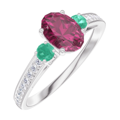 « L'ATELIER » NR. 163387Ring Witgoud 18 karaat - Robijn Ovaal 0.5 Karaat - Aanleunende edelstenen Smaragd - Setting Diamant 5 (4)