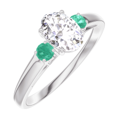 « L'ATELIER » NR. 182783Ring Witgoud 18 karaat - Laboratorium diamant Ovaal 0.5 Karaat - Aanleunende edelstenen Smaragd 5 (4)