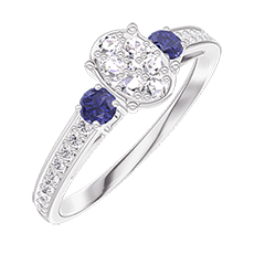 « L'ATELIER » NR. 209968Ring Witgoud 9 karaat - Cluster van natuurlijke diamantent Ovaal gelijkwaardig 0.5 - Aanleunende edelstenen Blauwe saffier - Setting Diamant 5 (4)