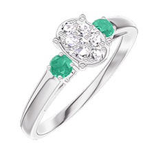 « L'ATELIER » NR. 209984Ring Witgoud 9 karaat - Cluster van natuurlijke diamantent Ovaal gelijkwaardig 0.5 - Aanleunende edelstenen Smaragd 5 (4)