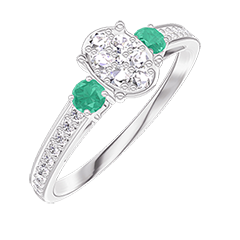 « L'ATELIER » NR. 209987Ring Witgoud 18 karaat - Cluster van natuurlijke diamantent Ovaal gelijkwaardig 0.5 - Aanleunende edelstenen Smaragd - Setting Diamant 5 (4)