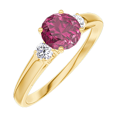 « L'ATELIER » NR. 1001732Ring Geelgoud 9 karaat - Synthetische robijn Rond 0.5 Karaat - Aanleunende edelstenen Laboratorium diamant 4.5 (21)