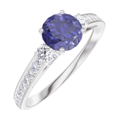 « L'ATELIER » NR. 1002218Ring Witgoud 9 karaat - Synthetische saffier rond 0.5 Karaat - Aanleunende edelstenen Laboratorium diamant - Setting Laboratorium diamant 4.5 (16)