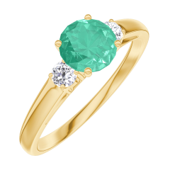 « L'ATELIER » NR. 1002692Ring Geelgoud 9 karaat - Synthetische smaragd rond 0.5 Karaat - Aanleunende edelstenen Laboratorium diamant 4.5 (21)