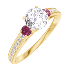 « L'ATELIER » NR. 162445Ring Geelgoud 18 karaat - Diamant rond 0.5 Karaat - Aanleunende edelstenen Robijn - Setting Diamant 4.5 (16)