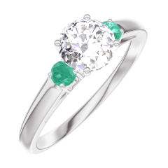 « L'ATELIER » NR. 162483Ring Witgoud 18 karaat - Diamant rond 0.5 Karaat - Aanleunende edelstenen Smaragd 4.5 (16)