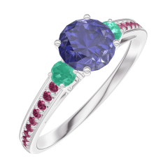 « L'ATELIER » NR. 163691Ring Witgoud 18 karaat - Blauwe saffier rond 0.5 Karaat - Aanleunende edelstenen Smaragd - Setting Robijn 4.5 (16)