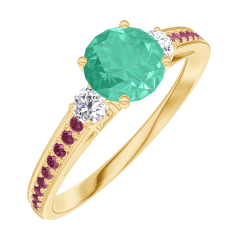 « L'ATELIER » NR. 164230Ring Geelgoud 9 karaat - Smaragd rond 0.5 Karaat - Aanleunende edelstenen Diamant - Setting Robijn 4.9 (16)