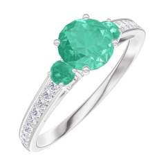 « L'ATELIER » NR. 164287Ring Witgoud 18 karaat - Smaragd rond 0.5 Karaat - Aanleunende edelstenen Smaragd - Setting Diamant 4.5 (16)