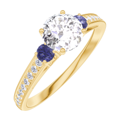 « L'ATELIER » NR. 182466Ring Geelgoud 9 karaat - Laboratorium diamant rond 0.5 Karaat - Aanleunende edelstenen Blauwe saffier - Setting Laboratorium diamant 4.5 (16)