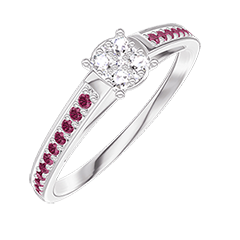 « L'ATELIER » NR. 209611Ring Witgoud 18 karaat - Cluster van natuurlijke diamantent rond gelijkwaardig 0.5 - Setting Robijn 4.9 (16)