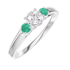« L'ATELIER » NR. 209684Ring Witgoud 9 karaat - Cluster van natuurlijke diamantent rond gelijkwaardig 0.5 - Aanleunende edelstenen Smaragd 4.5 (16)