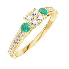 « L'ATELIER » Nº209685Ring Geelgoud 18 karaat - Cluster van natuurlijke diamantent rond gelijkwaardig 0.5 - Aanleunende edelstenen Smaragd - Setting Diamant 4.5 (16)